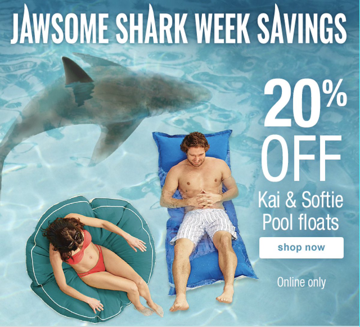 It's a fin-tastic week to shop Kai and Softie pool floats! 20% off all week long! http://bit.ly/293kh5r pic.twitter.com/U4B4JC5jg4