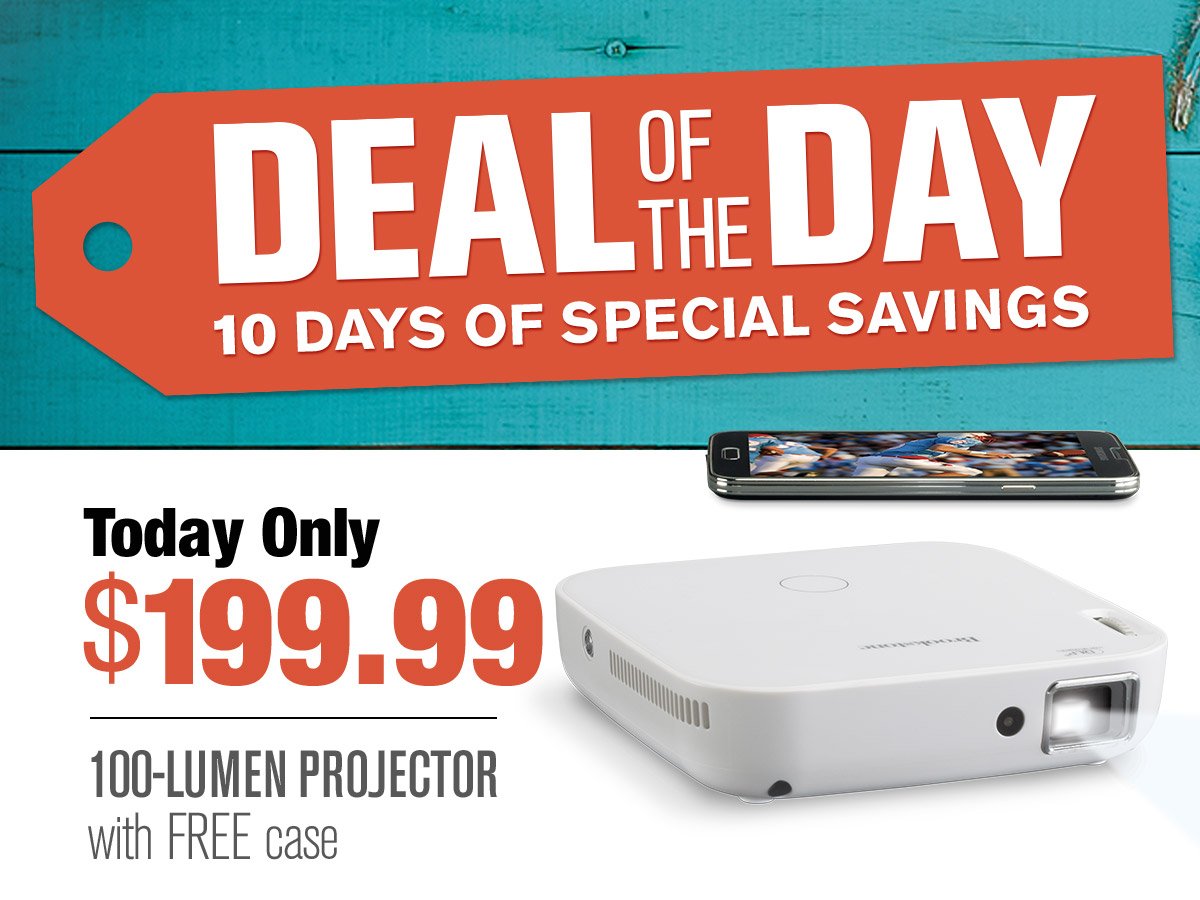 Our 4th Deal of the Day is $50 OFF a 100-Lumen Projector (plus a FREE case)! http://bit.ly/2st2B8g pic.twitter.com/kWzZveH563