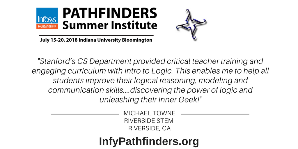 #Logic is in everything we do, it's key that#CS &#math teachers access the latest curriculum on logic! After all, logic is the language of CS. Teachers can apply to "Intro to Logic" course at#InfyPathfinders. Deadline to apply is April 27 http://bit.ly/teach_logic pic.twitter.com/yYjxDdoP0I