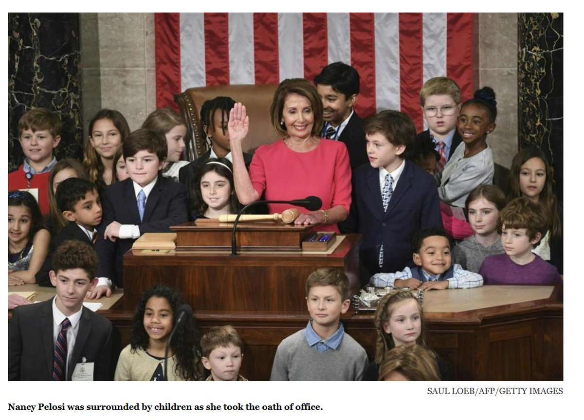 I really like her inviting the children in the room up to join her. Members of Congress (including Pelosi herself) should legislate with these children's futures in mind: making sure that the country -- and planet -- are even better for them and their children etc.pic.twitter.com/b1L0Ze643a