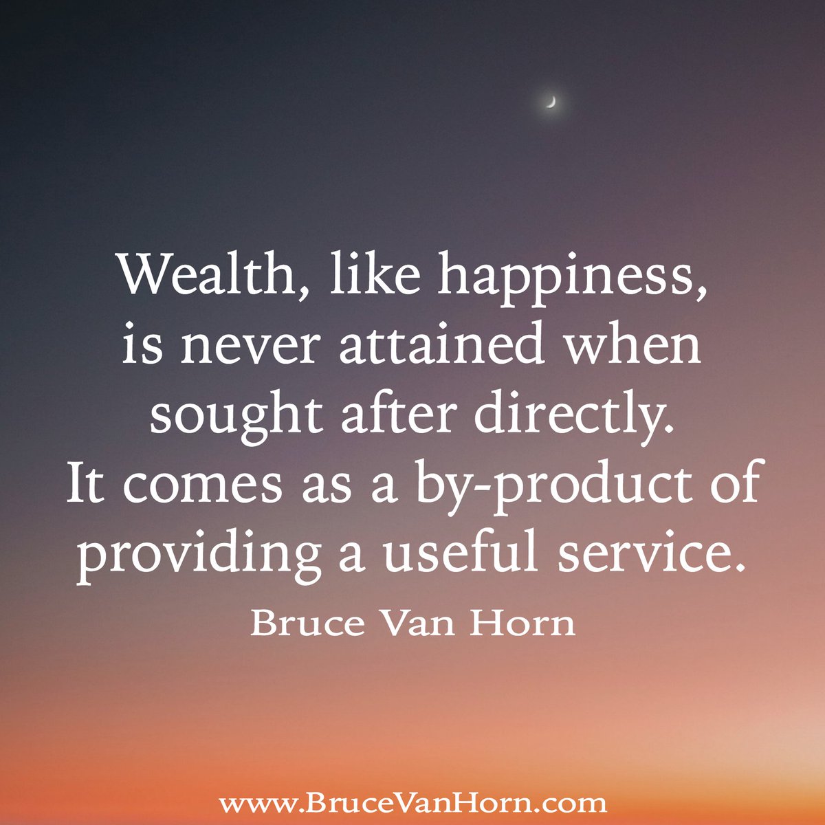 Wealth, like happiness, is never attained when sought after directly. It comes as a by-product of providing a useful service.