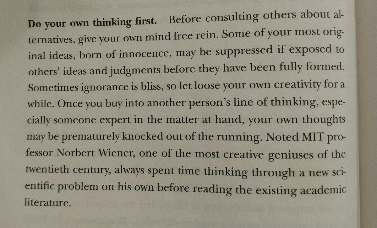 "Do your own thinking first. ... Some of your most original ideas ... may be suppressed if exposed to others' ideas ... before they have been fully formed." From Smart Choices by Hammond, Keeney, and Raiffa.pic.twitter.com/YvhLOzGmsv