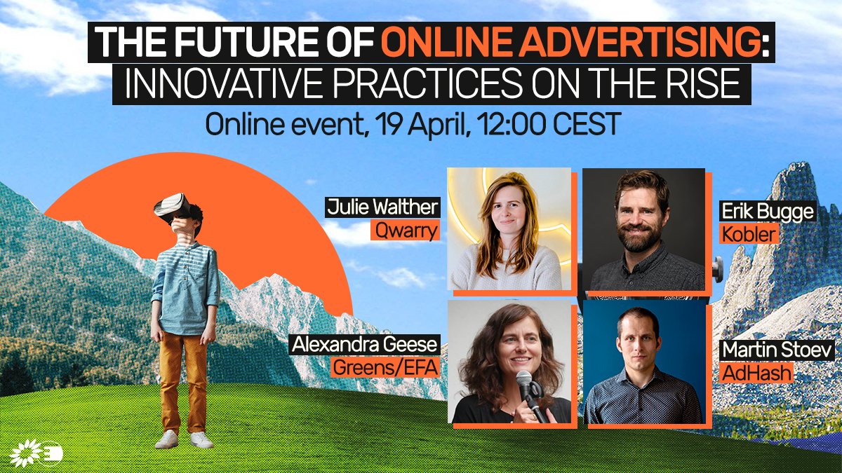 Join us today at 12:00 to discuss the future of online advertising with our MEP @AlexandraGeese, Martin Stoev from AdHash, Julie Walther from@QwarryFr,@BuggeErik from@KoblerContext &@BrusselsGeek!