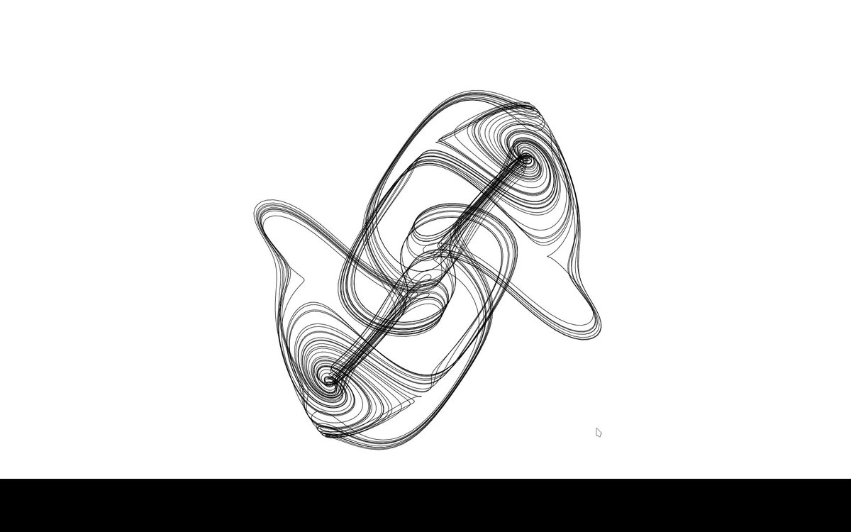 3D Thomas Attractor in a #dweet (140 code characters, with live rotation):