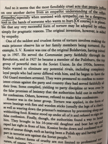 “the most extreme cruelty makes use of empathy. To be thoroughly cruel, it is necessary to know what the victim is feeling, in order to maximize the suffering....Empathy can be a dangerous tool in the hands of someone who wants to hurt" https://amzn.to/37ADHbl pic.twitter.com/NYlcJ1VApc