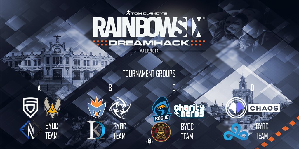 @DreamHackSpain! Number = Group seed Group A 1@PENTA_Sports 2@Team_Vitality 3@EnDGamingIT Group B 1@MockItLeague 2@NiPGaming 3 I Don´t Know Group C 1@GoingRogueGG 2@charitynerds 3@ence Group D 1@MilleniumTeam 2@DIGITALCHAOSgg 3@Cloud9#DHVLC18pic.twitter.com/qzFsSsXe0S