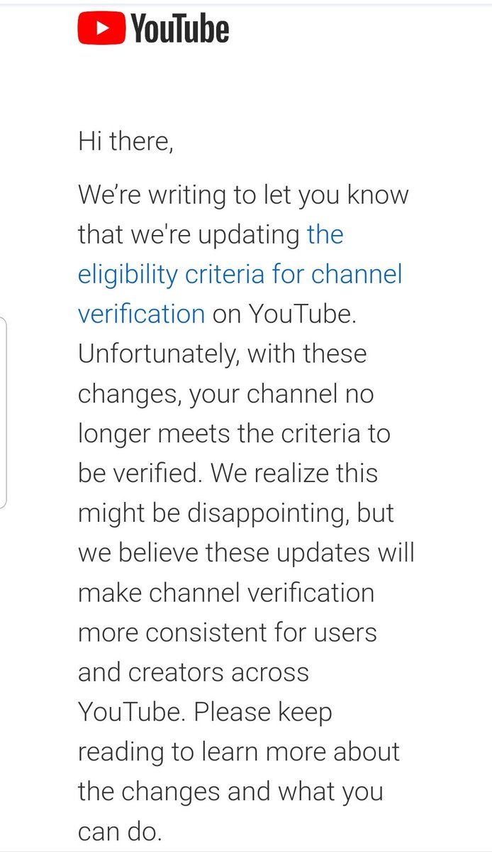 Once again, @YouTube devaluing individual content creators. My verification badge was removed today. IMO this is another step to replace the individual creator with the mainstream brand/corporate media.pic.twitter.com/UMQCWnLDHs