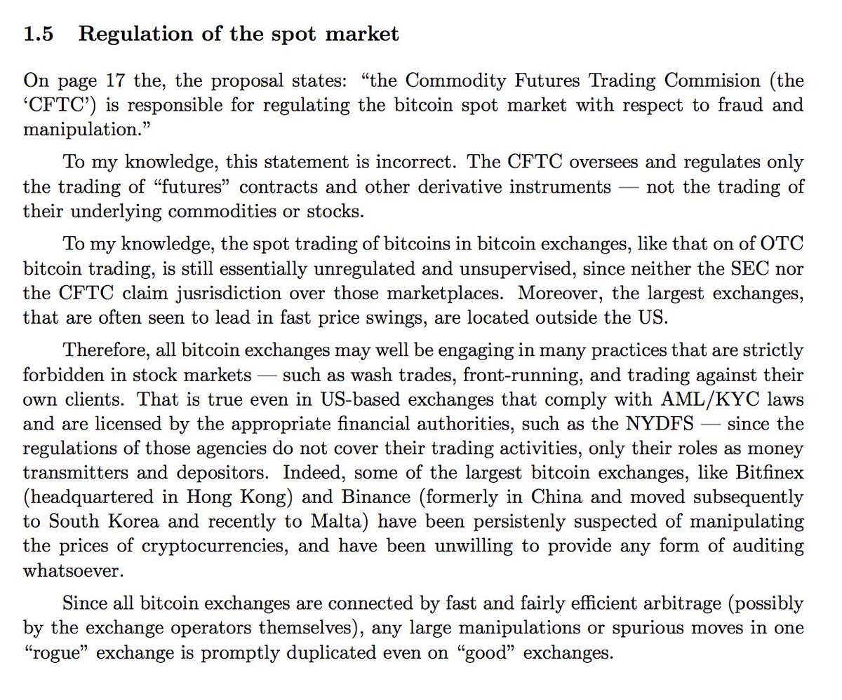 Unfortunately false. The Commodities Exchange Act of 1936 empowers the CFTC to police the spot markets underlying futures markets for fraud, because to manipulate spot markets is how you manipulate futures markets. Logic, folks.https://twitter.com/bascule/status/1019731160975355904 …