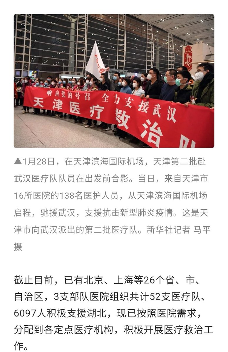 Up to now, there are 26 provinces, cities and autonomous regions, 3 military units, and 52 medical teams with 6,097 doctors and medical care personss organized by hospitals to actively support hubei. Will be more teams join to support if necessary.pic.twitter.com/BtxYDiNaOe