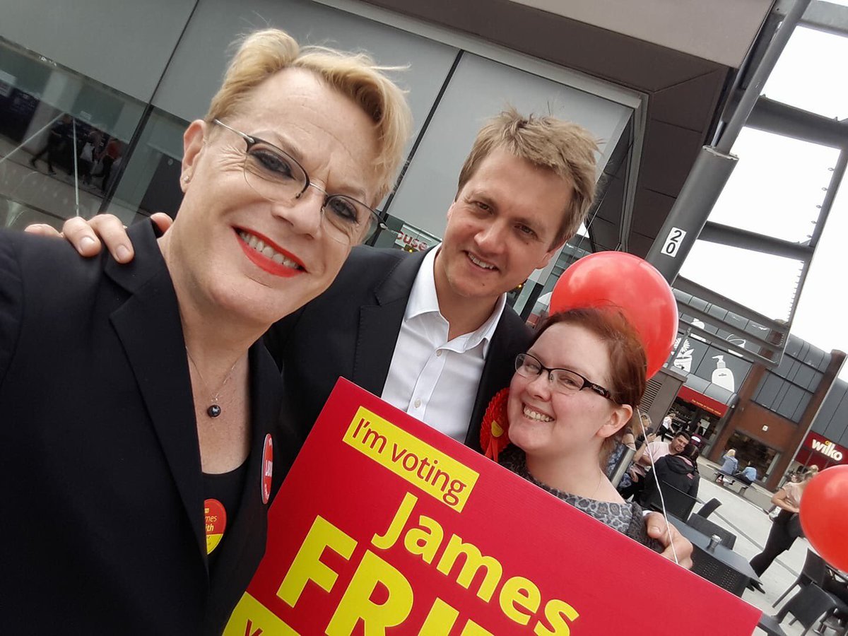 Great to have @eddieizzard with @JamesFrith in #BuryNorth today campaigning for #GE2017