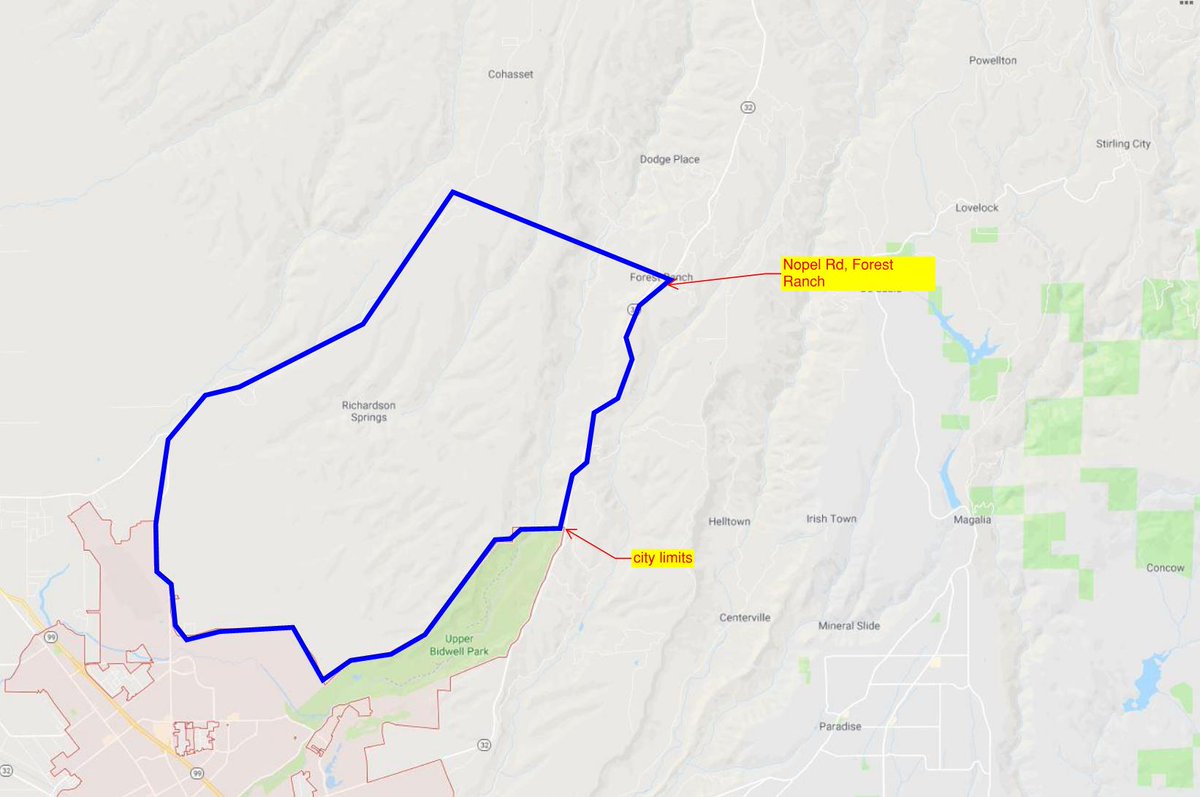 Closer to Chico, but to the north. Evacuation warning is up to but doesn't include the Chico City Limits.pic.twitter.com/43GnAEHqBO