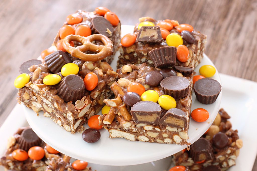 Reese's Pretzel Bars- you won't believe how amazing these little treats are! http://butterwithasideofbread.com/2017/02/reeses-pretzel-bars/ … AD