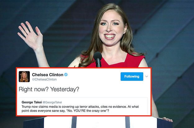 @BuzzFeed: Chelsea Clinton has been dragging Trump on Twitter and it’s pretty funny http://bzfd.it/2kPtlz8 pic.twitter.com/ywn8FzVdmy