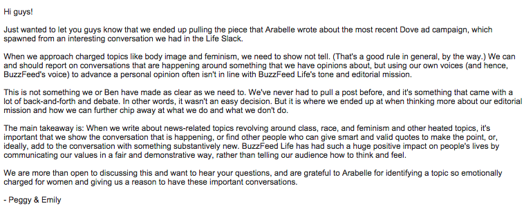 @BuzzFeedBen The original post was a solid piece of reporting, coupled with an authentic point of view. Oh well. Dove is happy. -