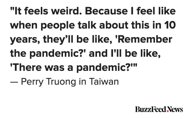 For people in the US, photos of parades and concerts feel like they're from another time. But for those living in places like Australia and Taiwan, it's life returning to some semblance of normalcy as the pandemic fades into the background https://www.buzzfeednews.com/article/davidmack/countries-without-coronavirus-no-covid?bftwnews&utm_term=4ldqpgc#4ldqpgc …pic.twitter.com/bSoyBoHxOk