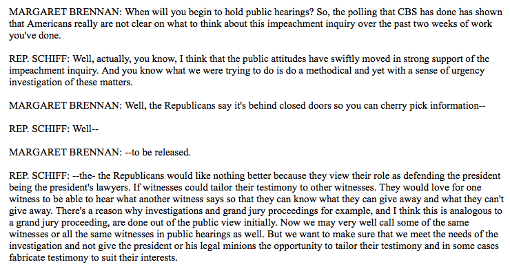 This excuse is silly. If any side wants to coordinate, they do it outside of the hearing. After testifying, any witness can recount what was said. The Dem witnesses, like the fake WB, can coordinate before and after testimony. Not a grand jury, a secret House stunt.