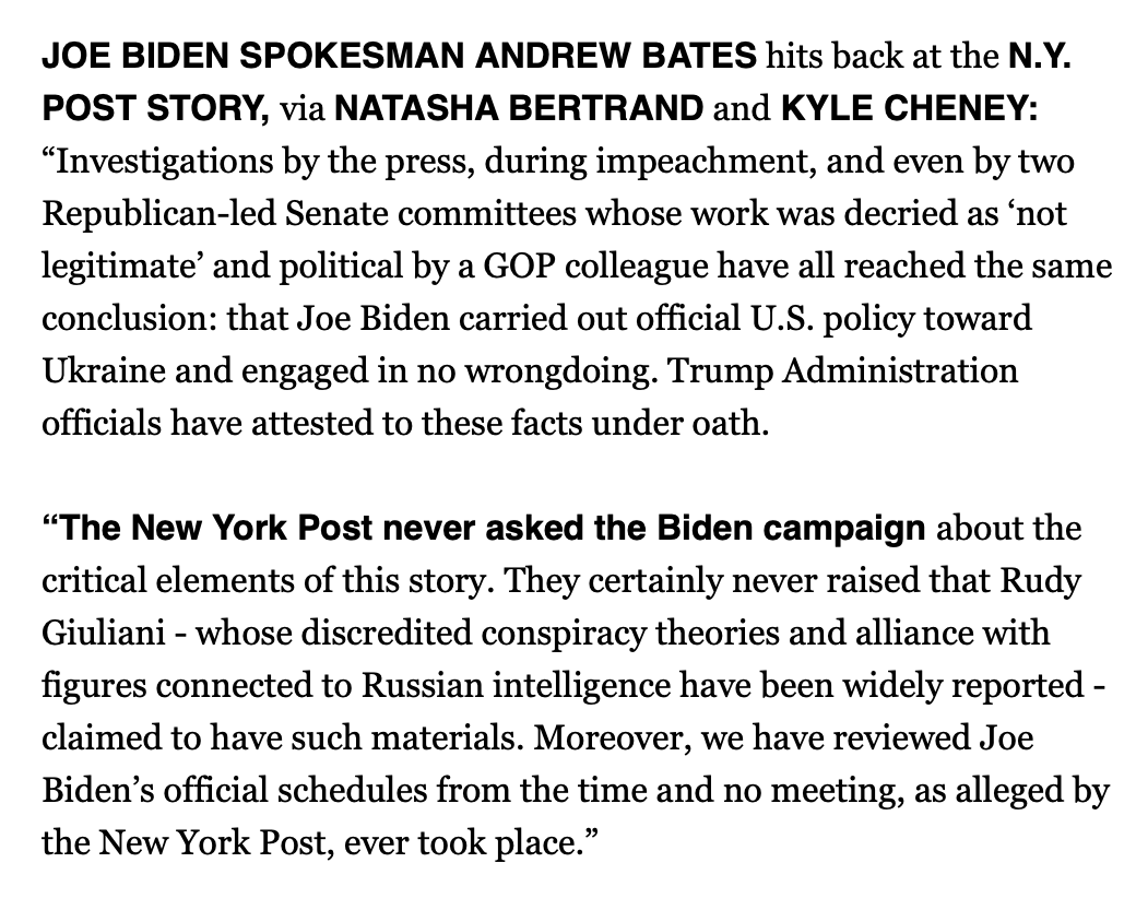 That’s the most equivocal statement possible. Biden didn’t say the meeting happened, they just checked his calendars, and only the specific meeting “as alleged by the Post” wasn’t in the calendar.