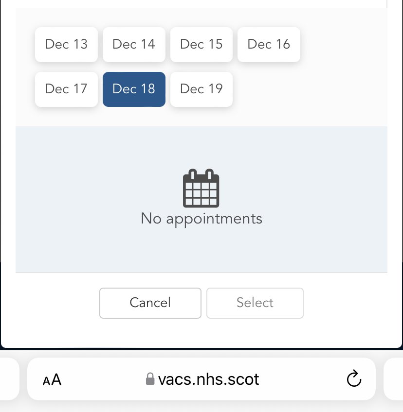 System not showing me a single booster appointment anywhere in Greater Glasgow and Clyde between now and December 20th. And Lateral Flow Tests ‘unavailable.’
