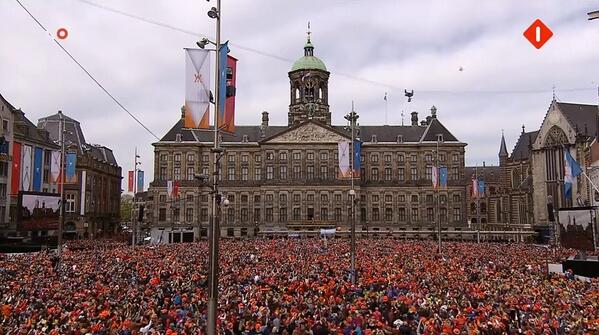 #MaximaReina: Más de 25 mil personas permanecen en la plaza Dam luego del saludo de la familia [FOTO]pic.twitter.com/1O8zDAj7dL