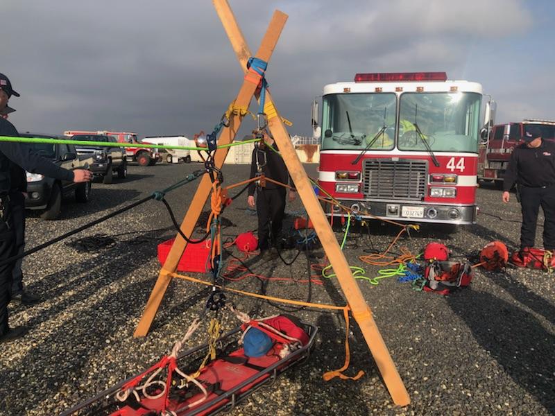 Really good drill today at Openshaw Training Center. The Technical Rescue Team working on overhead rope rescue scenarios, but they left some of their specialized gear behind, instead using more general tools.
