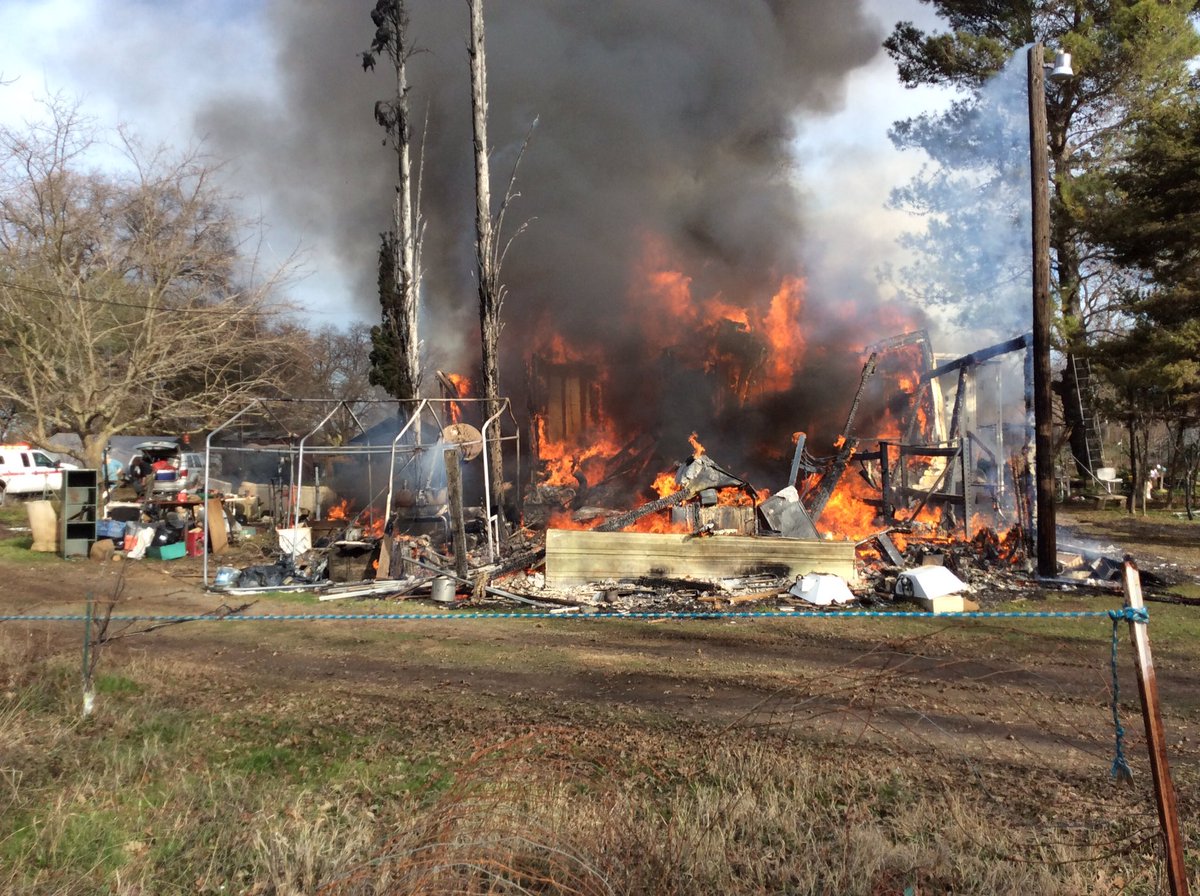 Butte County /CALFIRE Firefighters at scene of a structure fire at W. Liberty Rd. In Gridley. Firefighters made a nice stop and residents made it out safe. Will remain at scene for several more hours doing overhaul.