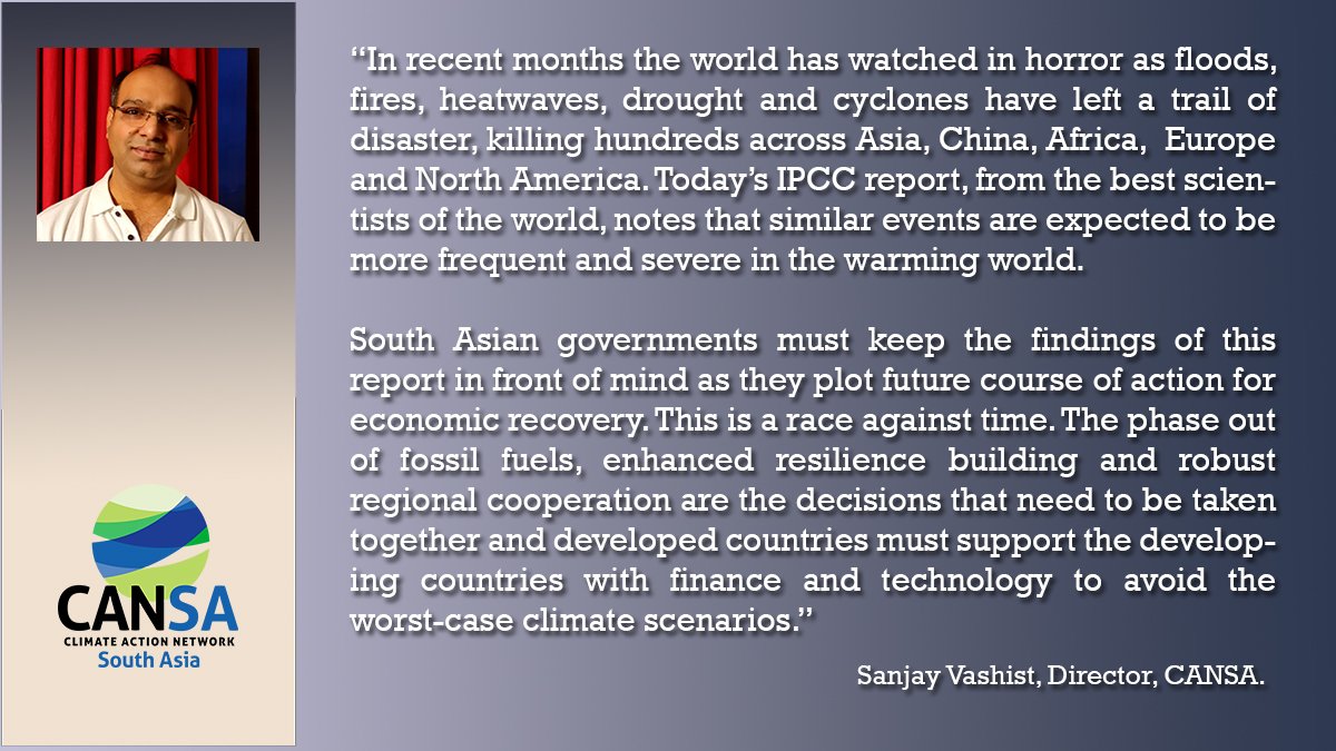 @CANIntl reacts to the latest#IPCC Working Group 1 report. Read the press release: https://bit.ly/2Vu4aal#FightFor1Point5#ActOnTheSciencepic.twitter.com/e8507mQoun