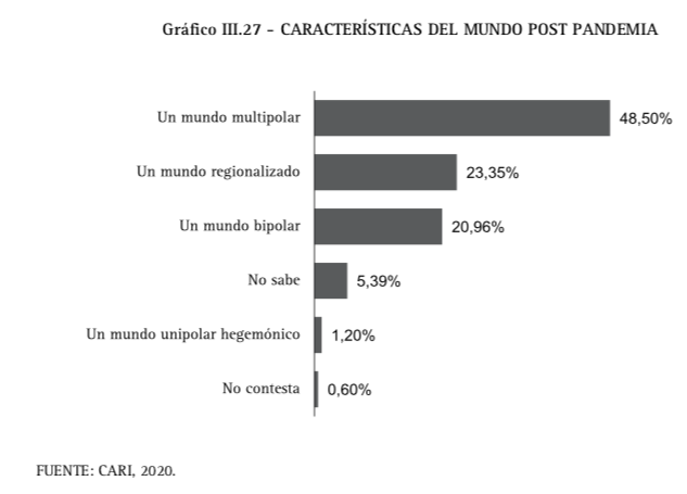 @CARIconsejo, la mayoría de los entrevistados ve asomar un mundo multipolar, pero a la vez que cree que la disputa entre EEUU y China se acentuará. ¿Un bi-multipolarismo?pic.twitter.com/TAJdCv9UGj
