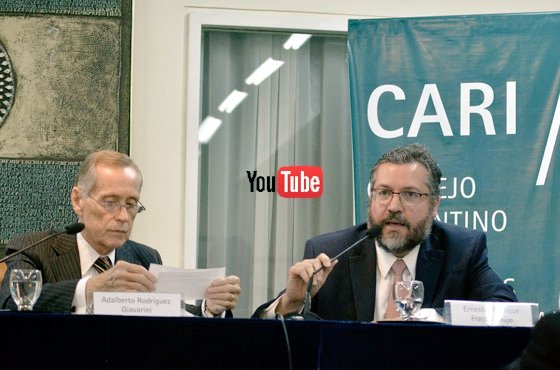 El canciller Araújo y "La nueva política exterior brasileña" por CARIwebTV en: https://youtu.be/vwD53hk-Uqc pic.twitter.com/ynsQyKsPUD