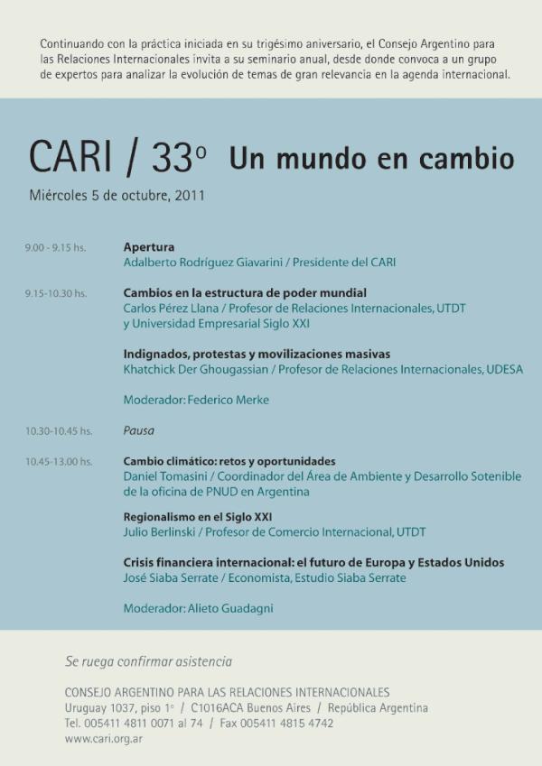 Miércoles 5 de octubre - 9.00 horas / Seminario CARI 33º / Un Mundo en Cambiopic.twitter.com/bQlv4esE
