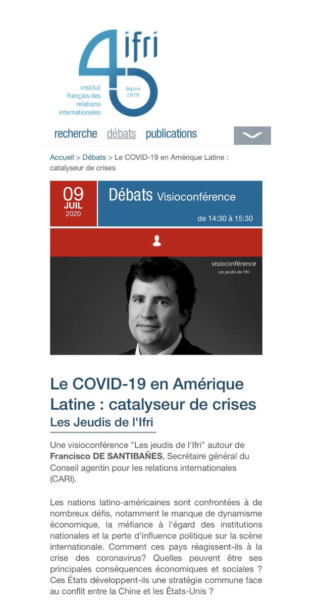 El Secretario General del CARI en el @IFRI_ , el próximo 9 de julio