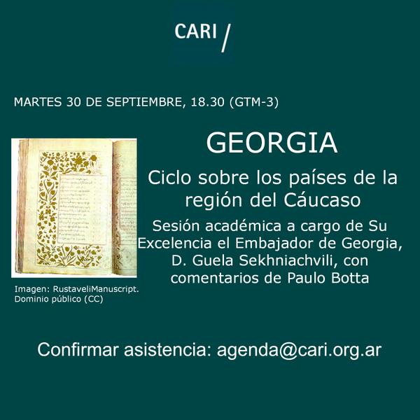 30/9 continúa el #Ciclo sobre países de la Región del #Cáucaso: #Georgia>http://bit.ly/1uHm000 pic.twitter.com/Unz1nnk8CY