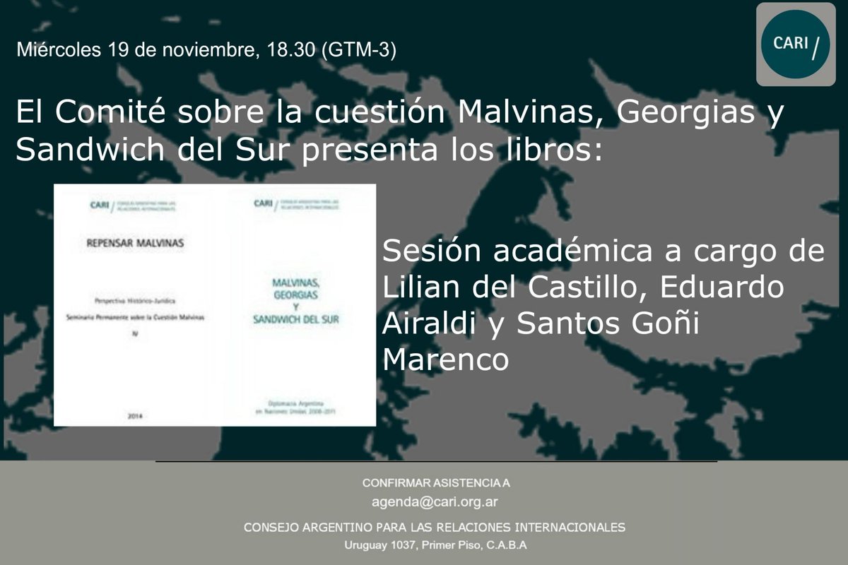 19/11 el CARI presenta dos libros sobre #Malvinas+INFO: http://bit.ly/1xELuPo pic.twitter.com/kyITHRj4gl