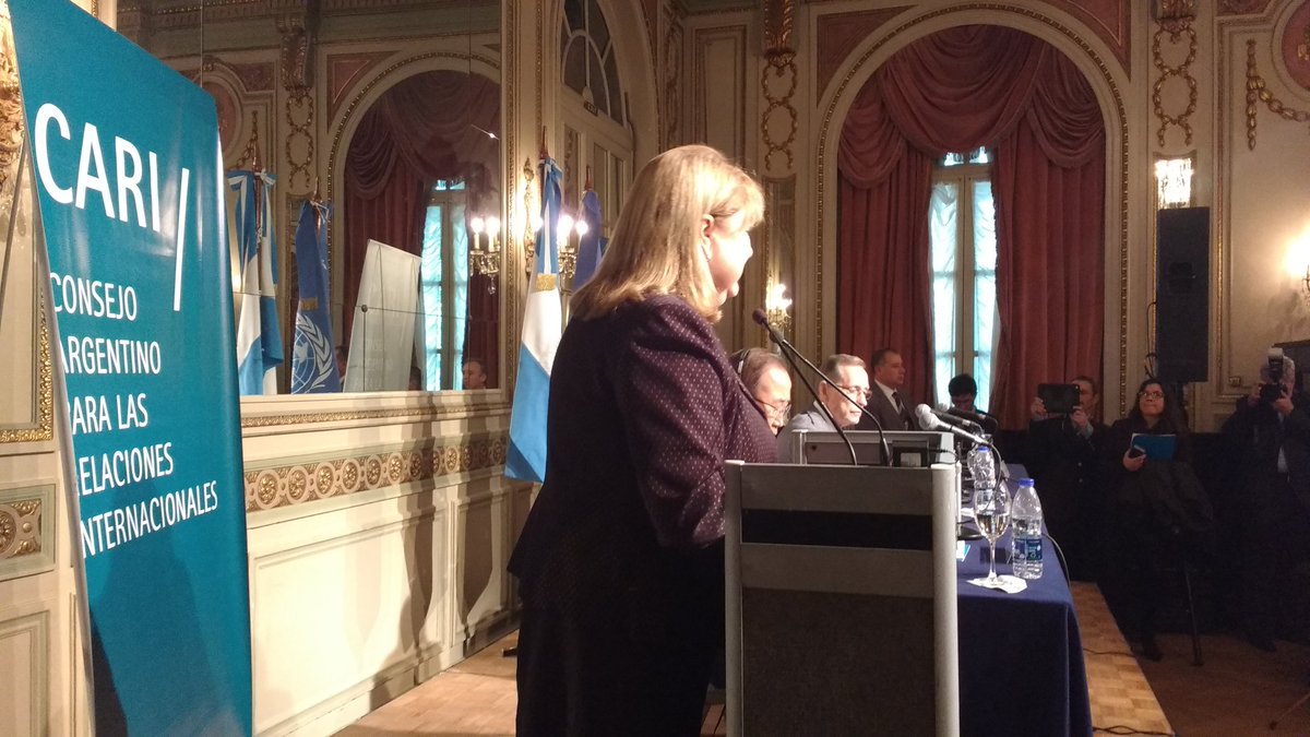 La canciller Susana Malcorra da la bienvenida al Secretario General de la ONU, al acto del CARI.pic.twitter.com/NEPbeY8JHt