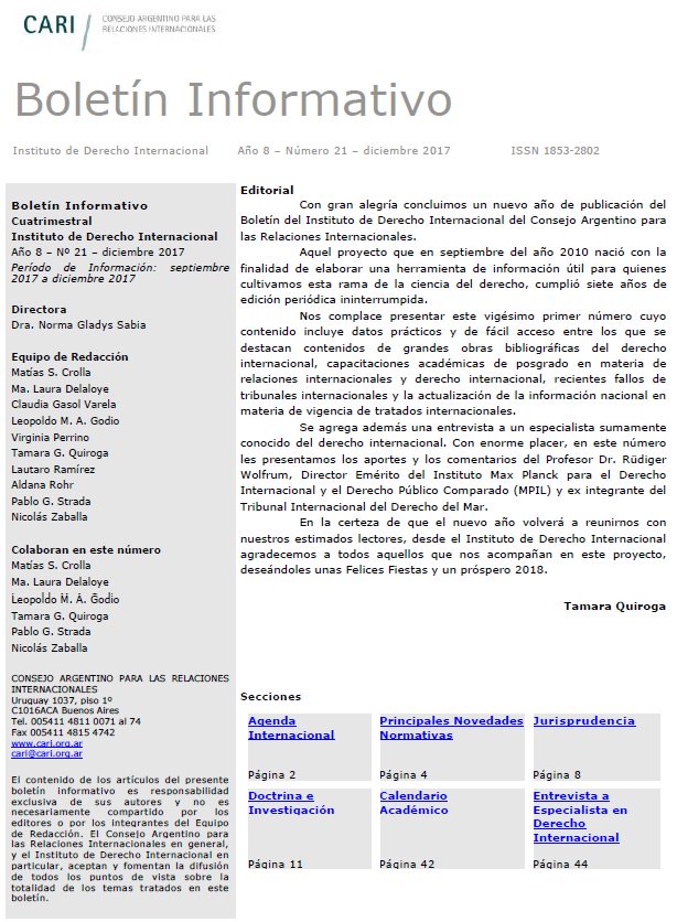 #recursos Último boletín del Instituto de Derecho Internacional.