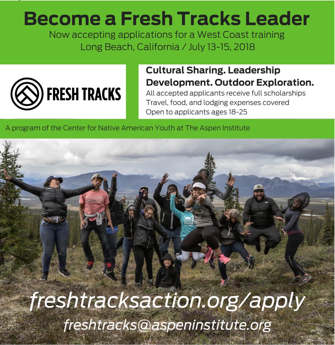 Fresh Tracks Leadership Expedition is currently accepting applications for the training program in Long Beach, CA. For more info on the training, including participant stories, training details, and evaluation results, please see the program website: http://FreshTracksAction.org pic.twitter.com/t64KbNdiJU