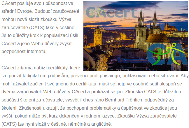 #strengthens its#commitment in#Central#Europe. As of now, prospective Assurers can also take the#Assurer#test#CATS in#Czech. This is an#important step towards#vulgarizing of the#Web of#Trust and#CAcert's#efforts to#increase#security on the#Internet.pic.twitter.com/qq1IaH17YR