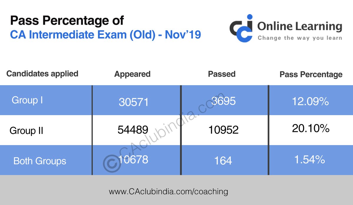 Pass Percentage of CA Intermediate (Old) Nov'19 Exams !!