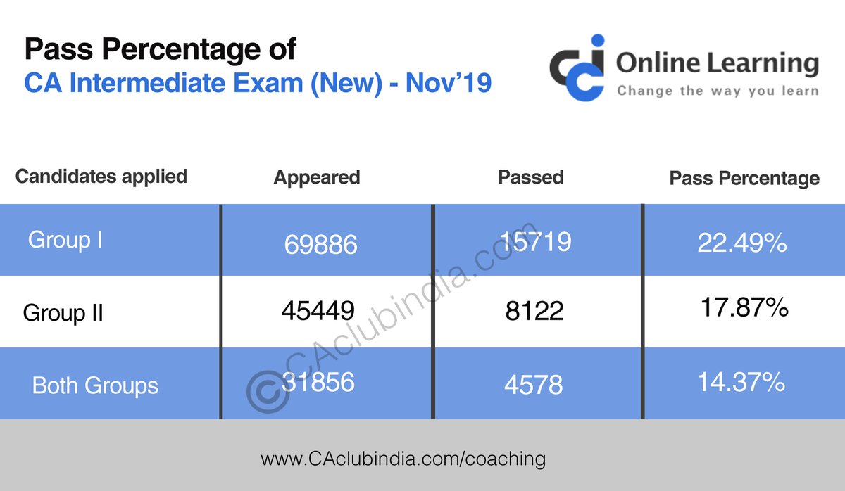 Pass Percentage of CA Intermediate (New) Nov'19 Exams !!