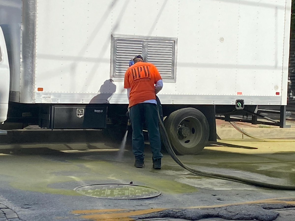 "City failed to issue permit for this but sent the chronically understaffed DPW to wash this away when trash is on every corner. Meanwhile, Black Trans Lives Matters remains intact and safe from city hoses." #Hypocrisy #priorities #doblacklivesmatterpic.twitter.com/VUCf8lviSp