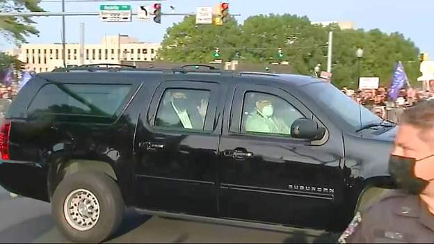 @WalterReedGME @realDonaldTrump left after treatment & prayers & waved to the crowd. I met @sajidtarar55 in front with others in prayer. #COVID19 #CovidTestingpic.twitter.com/eT0OI7woRb