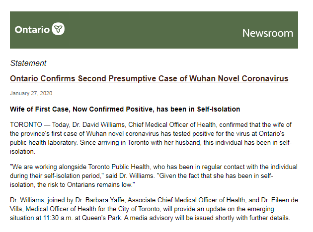 Watch live@CBCNews: Ontario's Chief Medical Officer Dr. David Williams to hold briefing after confirming Canada's 2nd case of coronavirus. Due to start at 11:30 am ET.http://cbc.ca/1.5441401