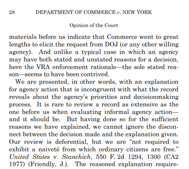 Today's ruling, written by Chief Justice John Roberts, says in part that the administration's argument for adding a citizenship question seems to have been 'contrived' and 'incongruent with what the record reveals about the agency's priorities and decision-making process.'pic.twitter.com/ZCiEsuOmJQ