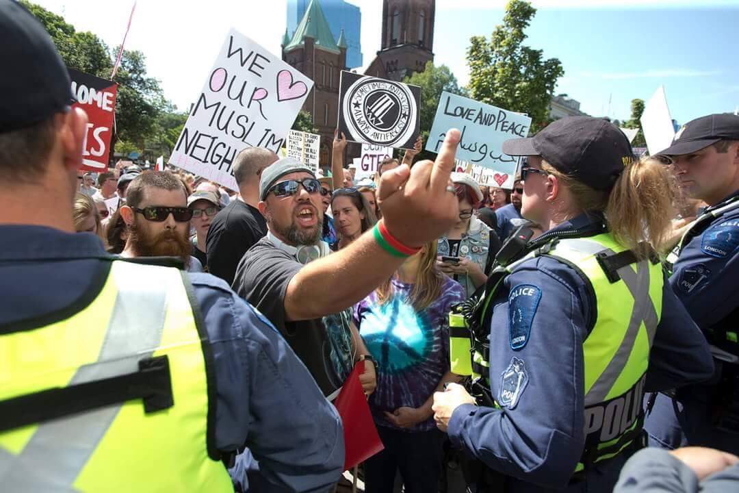 They were out exercising their free speech rights as well. Racists asshoels were allowed to speak. Non-racists assholes spoke louder.