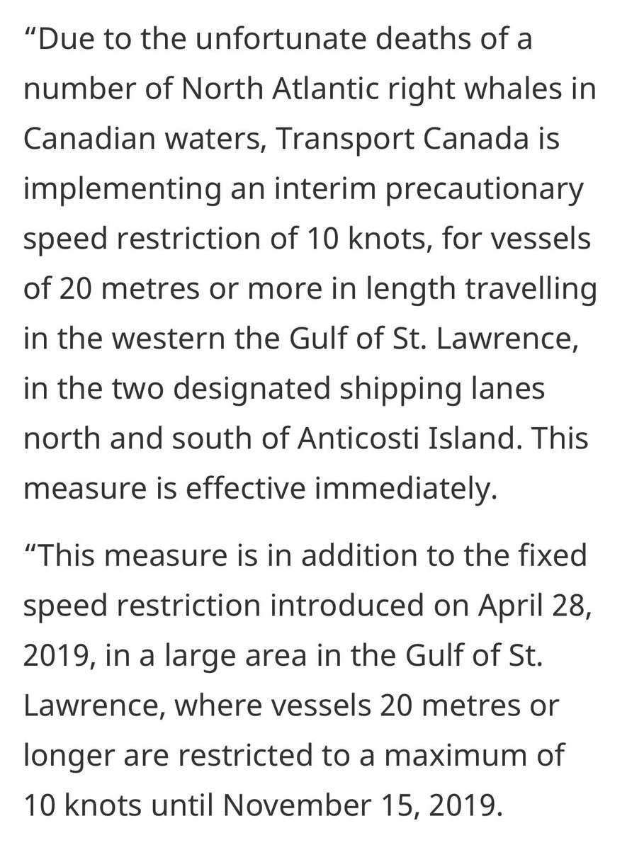 BREAKING: A fifth North Atlantic Right Whale has been spotted dead this season, according to DFO officials. Effective immediately, the government is imposing a speed restriction on large ships travelling through parts of the Gulf of St. Lawrence.pic.twitter.com/RU7UAWSGcY