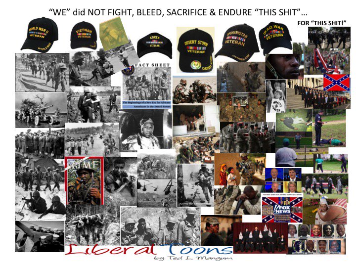 Speaking 4 A WAR VETERAN FAMILY; WE never FOUGHT 4 flags OR anthems. WE fought 4 RIGHTS, ENCLUSION, & OPPORTUNITIES 4 ALL CITIZENS! OVER 12 MILITARY FUNERALS. Fighting 4 COLORS, FLAGS, & SONGS R D misguided people! YET 100 YRS. NO TRUMP EVER SERVED/SACRIFICED!pic.twitter.com/L5vzIlXilA