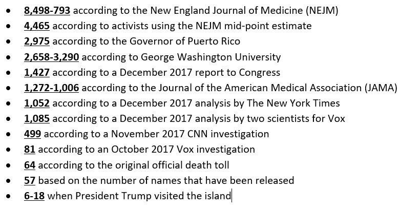 I'm still waiting for the list of the 3000 people killed and how their deaths were related to the hurricane! I'm sure it will be released soon, right?