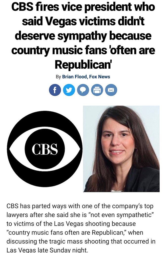 CBS exec fired after saying she is "not even sympathetic" to Las Vegas shooting victims http://hill.cm/IT0pJXs pic.twitter.com/WWv67oPrdG
