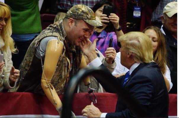 Nah! Got hit so hard on treatment of man w disabilities / words about JohnMcCain / this is photo op! Puts his hand on a guy's face? Right!