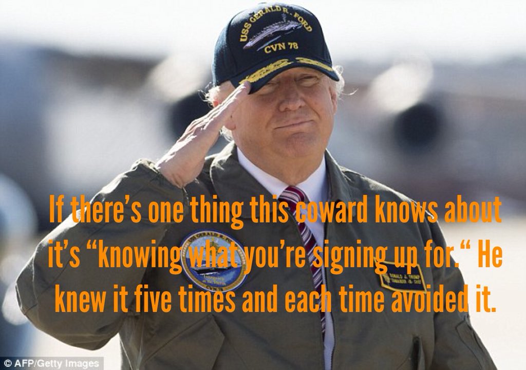 Dear God. Our grieving families should not be subjected to flippant comments from a draft dodger. Show some respect.
