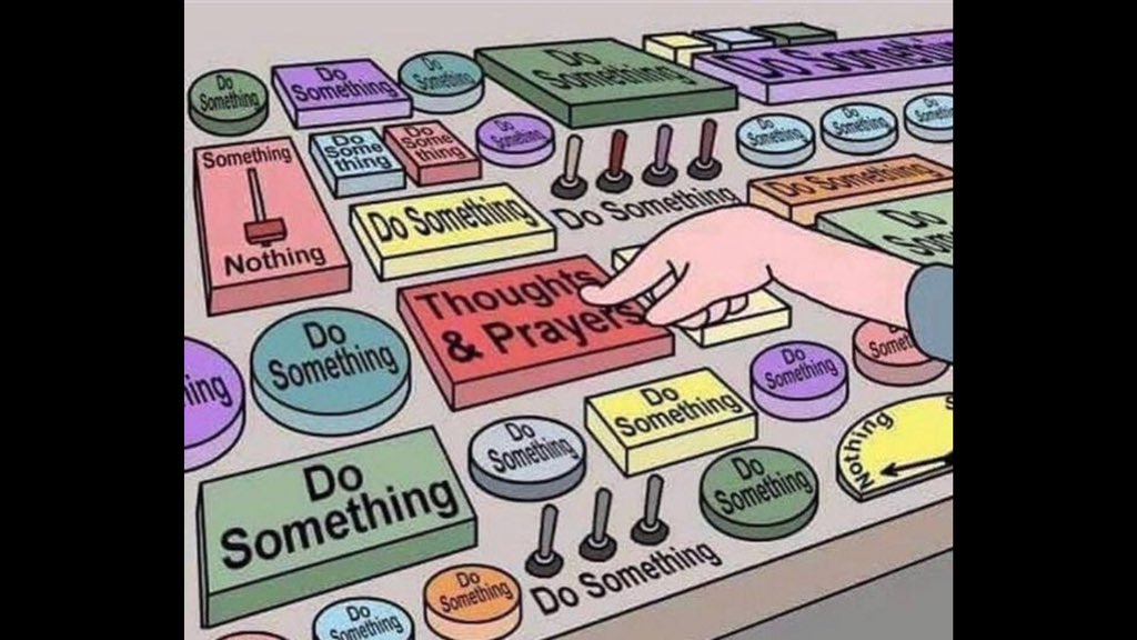 FYI, saying “thoughts and prayers” is no longer news when gun massacres happen on a regular basis and nothing is done to change this.